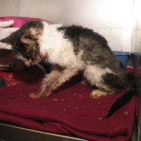 ER ist kastriert, zutraulich und bis auf die Knochen abgemagert. Wir geben ihm den Namen „Joshua“ (Joshua=Rettung). Joshua stand am 23. Januar plötzlich vor dem Seniorenheim in der Dr. Friedrich-Wolf-Straße und wollte hinein. Man gab ihm zu fressen, obwohl er sehr großen Hunger hat, kann Joshua das Futter nicht aufnehmen, weil er ein Geschwür auf der Zunge hat.