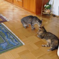 Ein schönes Hallo an das Team vom Tierheim Plauen, wir sind Betty und Bruni und wollten mal berichten wie es uns so ergangen ist. Als erstes durften wir in den Hobbyraum einziehen und konnten uns da unterm Bett verstecken. Da konnte uns keiner sehen. Nachts sind wir dann auf Streifzug durch das ganze Haus gegangen, da konnten wir uns intensiv umsehen. Erstmal haben wir die Regale bis unter die Decke bestiegen und das was unserer Meinung nach nicht hingehörte gleich mal runtergeschmissen. Unser Personal war so erschrocken, dass es aufgestanden ist. Wir waren dann aber schon wieder in unserem Versteck. Wir waren so gut im verstecken, dass wir nur über eine Wildtierkamera beobachtet werden konnten. Nach ca. 3 Wochen zeigten wir uns schon mal kurz unseren Dienstboten, damit Sie nicht so frustriert sind, obwohl wir sie ja nur zum Futter machen und Katzenklodienst benötigten. Jetzt zeigten wir uns schon mal kurz am Fenster, da wir ja auch die Gegend beobachten wollten. Das Frauchen beschäftig sich gerne mit Puzzeln und die Steine lieben wir sehr. Es ist uns eine Freude einzelne Steine immer wieder in unserem Trinkwasser einzuweichen, sehr zur Freude des Frauchens.Inzwischen kommen wir auch schon immer öfters ins Wohnzimmer zu unseren Bediensteten. Da ist mehr Aktion und die Sicht nach draußen in den Garten ist recht aufregend. Es steht auch noch ein Futterhaus für die Vögel da, dies ist sehr spannend und momentan werden die Jungvögel von Spatzen, Amseln und Goldammern gefüttert. Auch bedienen sich kleine Mäuse am Futter. Wenn wir schon raus könnten wäre das super, aber wir sollen uns erst einmal anfassen lassen damit wir von Zecken etc. befreit werden können. Unsere zwei Dienstboten versuchen es nun auf die schnelle Art und locken uns mit getrockneten Garnelen. Da werden wir schwach und lassen uns auch schon mal aus der Hand füttern und ganz kurz anfassen. Was tut man nicht alles für eine absolute Leckerei und das Personal freut es auch. Mal sehen wie lange wir noch davon profitieren können. Raus wollen wir schon gerne, was tut man nicht alles für seine Freiheit. Platz zum streunen wäre genügend vorhanden. Momentan muss halt der Blick aufs Futterhaus reichen. So das war ein kurzer Einblick in unser neues Leben. Wir wünschen Euch alles Gute und wir melden uns bestimmt nochmal. Alles Liebe von Betty und Bruni