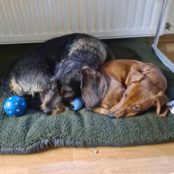 Meine lieben Freunde aus meinem alten Zuhause, ich wollte mal kurz Hallo sagen und berichten, wie es mir bei meiner neuen Familie geht. Es ist ganz toll hier! Mit meiner Schwester verstehe ich mich super! Manchmal spielt sie sich als meine Mutti auf, aber das überlebe ich spielend! Nachts muss ich kein Pippi mehr machen, denn wir kuscheln alle zusammen in Frauchens Bett und da will ich nicht in die Kälte. Ich kann schon ganz schön lange anhalten!!! Morgens gehe ich mit Elli erstmal alles checken in unserem Garten und dann toben wir rum😁 Später helfe ich Frauchen in der Küche beim Kochen. Das ist super! Da fällt auch schon mal was runter, dann freuen Elli und ich uns riesig. Auch Löcher darf ich buddeln! Aber nicht überall.. Damit kann ich leben. Dann gehen wir jeden Tag in den Wald! Da gibt’s sowas von viele Löcher, wo ich meine Nase reinstecken kann! Elli zeigt mir immer, wo die besten sind. Die zeigt mir sowieso ganz viele tolle Sachen! Nachmittags schleichen wir immer in die Scheune, um zu gucken, ob die Katzen Futter übergelassen haben. Das mümmeln wir dann schnell weg. Frauchen schimpft dann immer, aber ich glaube, so schlimm findet die das gar nicht.. Wir schauen dann immer sehr schuldbewusst, wenn sie uns erwischt und dann lacht sie immer.. Ich liebe mein Frauchen und wenn sie ruft, komme ich sofort! Auch Sitz habe ich schon voll drauf! Herrchen ist auch total lieb, manchmal darf ich mit Elli auch in seinem Büro liegen.. Dann dürfen wir aber nicht rüpeln, weil er ja arbeiten muss. Ich hab auch schon voll zugenommen, das Baby – Halsband hat Frauchen schon gegen ein richtiges Jungenhalsband getauscht! Bin voll stolz! Also.. Macht euch keine Sorgen, ich bin hier richtig gut angekommen und es wird jeden Tag besser! Alles Liebe an Euch alle, auch von Elli, Herrchen und Frauchen, ich melde mich wieder, Euer Willi