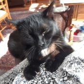 Liebe Mitarbeiter und Mitarbeiterinnen, vor fast einem Jahr haben wir unsere Katze bei Ihnen abgeholt. Seitdem bereichert sie unser Leben. Die Freude an und mit ihr ist ungebrochen wie am 1. Tag. Sie hat sich schnell bei uns eingelebt und, wie sollte es anders sein, alle Herzen erobert. Bereits am 9.1. hat sie das erste Mal auf meinen Beinen mit mir geschlafen. Zu meinem Mann hat sie natürlich auch guten Kontakt und er zu ihr. Inzwischen hat sie einen neuen Namen, Cleo. Alles dreht sich um sie. Zum Beispiel jetzt kontrolliert mein Mann die Katzenklappe,  dass sie nicht einfriert. Er sorgt sich auch um sie. Unsere Cleo hat ein wunderschönes Katzenleben. Sie kann raus oder rein  wie sie will. Mit Nachbars Kater hat sie sich angefreundet. Es ist eine Freude zu sehen, wie sie einander suchen und miteinander spielen. Die ganze Nachbarschaft amüsiert sich. Sie stecken die Nasen zusammen.  Das sieht aus, als küssen sie sich. Diese Zuneigung bekomme ich natürlich auch.  So ein Vertrauen und eine Innigkeit! Ich genieße es. Anbei schicke ich Ihnen noch ein paar Fotos  und wünsche Ihnen  allen ein gesegnetes Weihnachtsfest. Herzliche Grüße