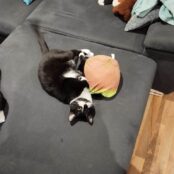 Liebe Tierheimmitarbeiter, es ist schon einige Zeit ins Land gegangen. Doch gerne wollen wir euch zeigen, wie groß wir geworden sind. In unserer Familie fühlen wir uns sehr wohl und werden von allen geliebt, auch wenn wir mal Mist anstellen. Auch von unserem Besuch erhalten wir viele Streicheleinheiten. Noch sind wir nicht kastriert, aber bald wird das auch kommen. Liebe Grüße Euer Hinz und Euer Kunz