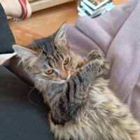 Katerle geht’s gut.  Er ist in dieser einen Woche schon gewachsen und wird ein richtiger Kater. Nichts was sich bewegt, ist vor ihm sicher.😉 Viele Grüße