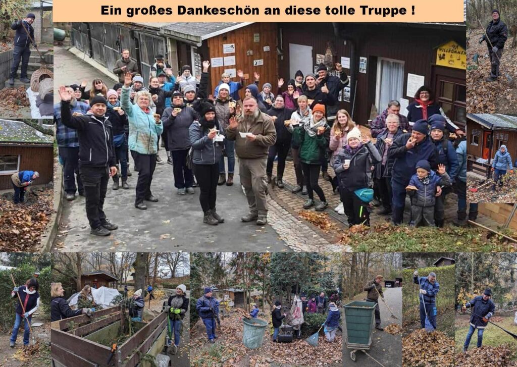 Über 35 ehrenamtliche Helfer fanden sich am heutigen Tag bei uns im Tierheim ein, um das Team beim herbstlichen Arbeitseinsatz zu unterstützen. 💪 Wir waren wieder einmal völlig sprachlos über die Resonanz auf unseren Aufruf. 🫢 Sogar Helfer aus Chemnitz waren vor Ort! So war es möglich , dass über 40 Leute auf dem Gelände verteilt an die Arbeit gingen. Das Hauptaugenmerk lag auf unserem Tierfriedhof und den Wegen im Gelände, wo es Unmengen an Laub zusammenzuharken und wegzuschaffen galt. 🍁🍁🍂🍂 Sack für Sack, Schubkarre für Schubkarre wurden zum Kompost gefahren. Der Berg wuchs und wuchs. Nun können die Tiergräber mit Reißig abgedeckt und winterfest gemacht werden.🙏🙏 Aber auch rund um´s Katzenhaus, vor dem Wäldchen und am Exotenhaus wurde geharkt, gefegt und Beete in Ordnung gebracht. Schlammige Schuhe, schmutzige Klamotten…..alles kein Ding.🤷♀️🤷 Am Ende zählen die vielen glücklichen und stolzen Gesichter und die Freude darüber, was gemeinsam geschafft wurde ! 👍👍
