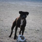 Hannibal – Labrador-Boxer-Amstaff-Mischling – männlich, unkastriert – am 31.10.2017 geboren – Schulterhöhe ca. 55 cm – Farbe: weiß-schwarz – Herkunft: unbekannt – gechippt, geimpft, entwurmt