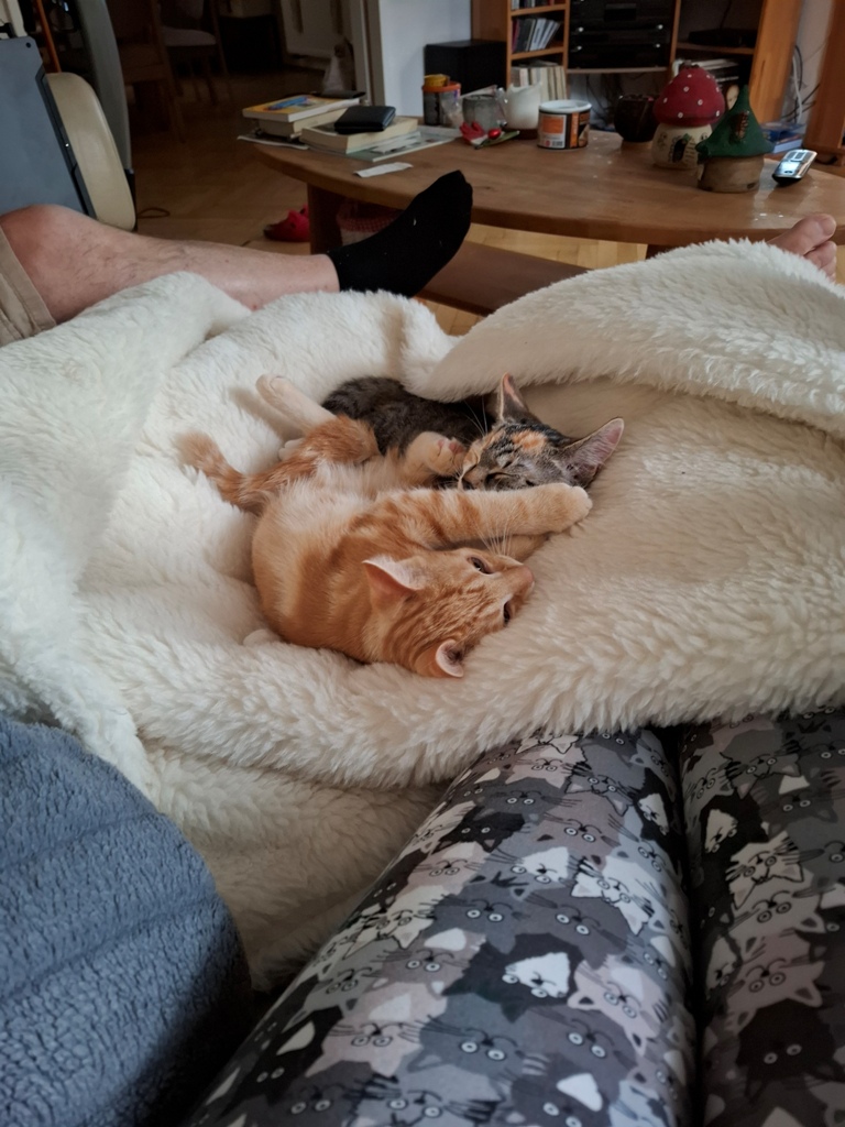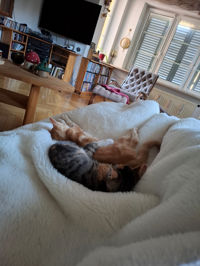 Wir haben unsere Beiden, Tanja und unsere scheue Rote – genannt Hades, am 11.08.2025 von Ihnen abgeholt. Die Beiden haben sich langsam bei uns eingelebt. Scheu würden wir sie nicht mehr nennen. Wir müssen eher aufpassen, dass das Haus nicht auseinandergenommen wird. Sie erziehen sogar unsere Tochter zur Ordnung, da die Beiden gerne nachts ab 2 Uhr mit „Aufräumen“ beginnen. Den Tag verbringen sie meistens auf unserer besten Decke oder Schaukelstuhl, und wir müssen sehen, wie wir zurecht kommen. Sie bereiten uns große Freude! Wir müssen nur noch herausfinden, wie wir die sauberen Kleider vor den Beiden retten können ( unter dem Kleid liegt Tanja und lässt sich jagen). Wir freuen uns auf die kommenden Jahre mit den Beiden! Mit freundlichen Grüßen