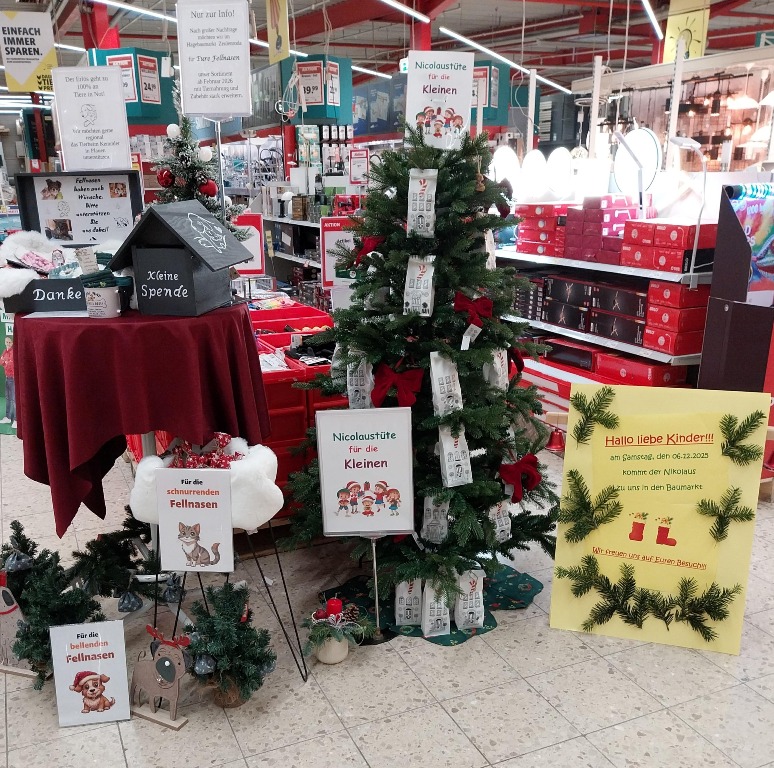 Zum ersten Mal in diesem Jahr bestand für uns die Möglichkeit im Globus Baumarkt einen Wunschbaum aufzustellen, die Kunden haben davon regen Gebrauch gemacht, da es dort jetzt auch Tiernahrung und Artikel fürs Tier zu kaufen gibt. Einen Großteil der Spenden wurde uns schon in den letzten Tagen gebracht. Der stellv. Marktleiter Herr Pietsch ließ es sich aber nicht nehmen, die letzte Lieferung mit einer Kollegin persönlich zu uns zu bringen. Wir sagen herzlichen Dank !