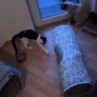 Liebes Tierheim Team, wir wollen gern einmal berichten, wie froh wir sind, dass Puschel und Paule bei uns eingezogen sind. Wir hätten uns keine geselligeren und familienfreundlicheren Katerchen als die Beiden wünschen können. So neugierig und verspielt und immer mittendrin statt nur dabei bereichern sie unseren Familienalltag und sind bereits nach nicht mal zwei Monaten für uns nicht mehr wegzudenken. Die zwei Kleinen haben einen gesunden Appetit 🙂 und innerhalb kürzester Zeit das ganze Haus in Beschlag genommen. 🙂 nochmal vielen Dank, dass ihr die zwei so gut versorgt habt!!! Anbei ein paar Fotos. 🙂 Viele liebe Grüße