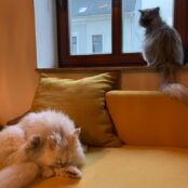 Heute möchte ich kurz über Stamperle und die Eingewöhnung berichten. Wir haben ihn Peterle genannt. Er hat sich bis jetzt ganz gut eingelebt, hat immer noch einen sehr großen Appetit und ist zu uns Menschen ganz lieb. Mit unserem Teddy versteht er sich auch. Sie sind noch keine „Schmuse-Freunde“, aber respektieren sich und tolerieren sich in einem gewissen Abstand. Peterle kann wahrscheinlich Teddy nicht so richtig einschätzen, weil dieser Streitereien am liebsten aus dem Weg geht. Doch ab und zu wird doch ein bisschen gefaucht, gebrummelt und gerauft. Aber mit der Spiel-Angel zusammen spielen und Leckerlies zusammen fressen klappt es schon und ich glaube, dass die beiden einfach Zeit brauchen.